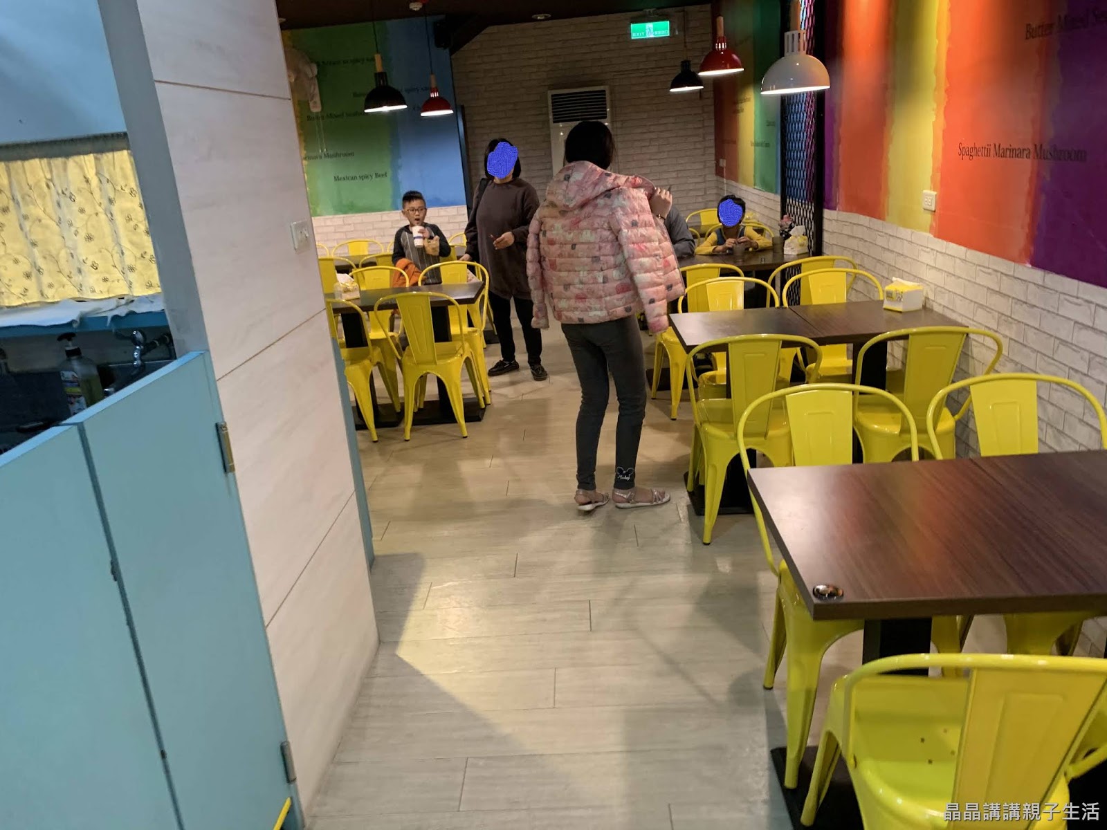 內部裝潢色彩繽紛,內部空間不擁擠,另外有提供小孩專用座椅。