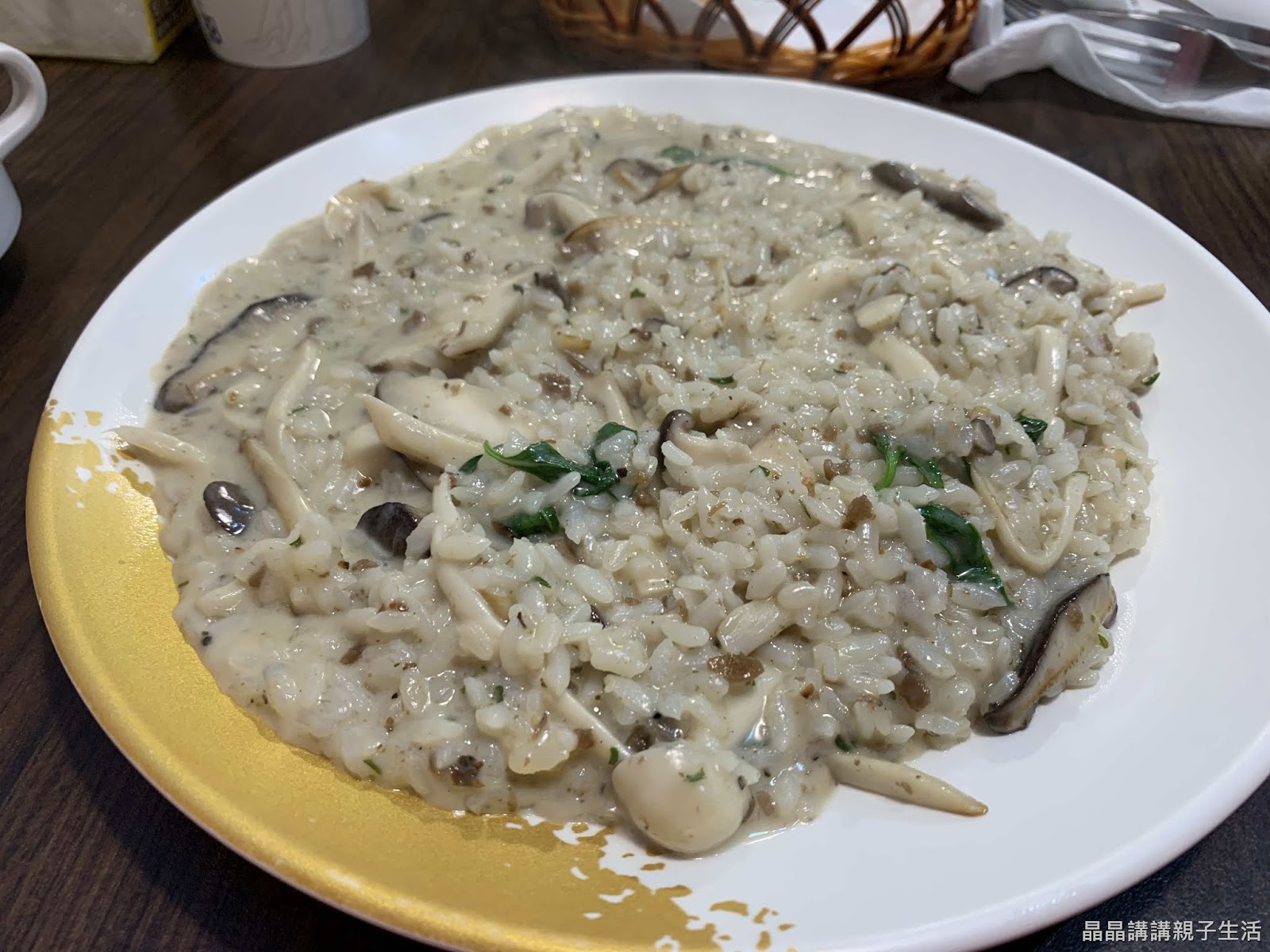 姐姐朝思夢想的牛肝菌野菇燉飯(其它地方都要快300,這裡只要158,姐姐就敢點了)。雖然是全素料理,但真的好吃。