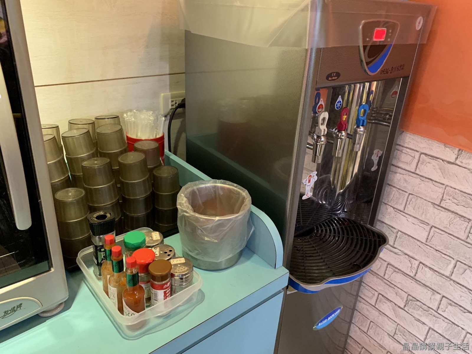 還有提供紅綠茶包及飲水機,還有調味料。